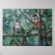 Squirrel monkeys enjoying the view near the top of the rainforest. From an original painting by artist, Laura Regan