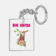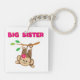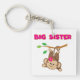 A cute monkey with a pink flower swings by her tail from a branch and pink text reads "Big Sister" on big sister T-shirts, key chains, cards, stickers, tote bags, magnets, mousepads, pillows, and other big sister apparel and gifts!