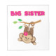 A cute monkey with a pink flower swings by her tail from a branch and pink text reads "Big Sister" on big sister T-shirts, key chains, cards, stickers, tote bags, magnets, mousepads, pillows, and other big sister apparel and gifts!