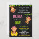 Monkey birthday invitation Girl 1st birthday invitation Wild one invite Jungle party invite.