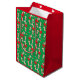 Monkey Christmas Present Pattern Green Red Medium Gift Bag