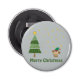 Cute monkey wearing a green and red Christmas elf hat next to a Christmas tree on a starry night. Merry Christmas!