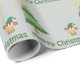 Cute monkey wearing a green and red Christmas elf hat next to a Christmas tree on a starry night. Merry Christmas!