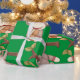 A monkey hanging by its tail holding a football. This design looks really effective on these Wrapping Paper