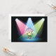 This design is of a monkey in spotlights. The monkey is dressed up and done in a cartoon style and looks to be putting on a show. The money is standing on stage under some very colourful spotlights. This monkey in spotlights design looks great on these invitations