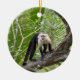 Photo of a capuchin monkey (also called a white-faced monkey) staring directly into the camera from a big tree branch in the jungles of Costa Rica.
