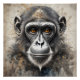 A monkey with detailed watercolor with expressive eyes is portrayed against a soft, blurred background. The natural colours enhance the lifelike appearance.