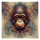A Monkey with detailed watercolor with expressive eyes is portrayed against a soft, blurred background. The natural colours enhance the lifelike appearance.
