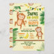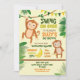 Monkey Party Birthday Swing Over Yellow Fun Invitation