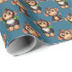 Cute Little Monkeys seamless repeat pattern design on Blue background