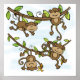 Monkey Shine T-shirts, bags, mugs, cards, stickers, keychains, pillows, journals, mousepads, and other monkey apparel and gifts features four cute brown monkeys swinging from tree branches and eating bananas against a sky of blue.