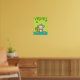 A brown girly monkey sitting down. Looking cute and kawaii with pink blushing cheeks. A banner of jungle leaves stretches across the top. Personalise with a child's name. Example: Elizabeth's Room. Perfect for a nursery or child's room. Set on a lime green and brown colour scheme.