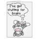 Humourous sock monkey design with black text reads "I've got stuffing for brains!".