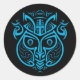 MONKEY SYMBOL, GRAPHIC BLUE DESIGN, MAYAN STYLE CLASSIC ROUND STICKER