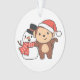 Monkey with a snowman in winter for Christmas - a snowman for winter and Christmas. A winter greeting in the cold season for the holidays. Christmas monkey with snowman.