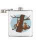 Flask with a brown monkey climbing a tree, and another one sitting in the tree, illustration by MaxiHarmony / Radka Kavalcova