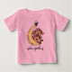 Two adorable girl monkeys with pink bows and a yellow banana with text that reads "Twin Girls"on twin girl T-shirts, bodysuits,mugs, cards, stickers, postage stamps, and other twin girls apparel and gifts