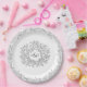 Mono grey white circle leaf art monogram wedding paper plate