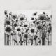 The intricate details of each petal and leaf are meticulously rendered, creating a stunning visual tapestry. The absence of colour draws the eye to the delicate lines and textures, highlighting the inherent beauty of nature. The flowers seem to dance across the canvas, their stems intertwining and creating a sense of movement and rhythm. Subtle splatters of black ink add a touch of drama and energy to the composition. The overall effect is a mesmerising blend of elegance and dynamism, perfect for adding a touch of sophistication to any space.