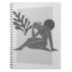 Minimalist and striking, this notebook features a grayscale abstract figure seated beside a bold leaf shape with a dark circular sun. Its modern, monochrome design exudes elegance and focus, perfect for writers, artists, and dreamers.