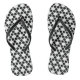Modern monochrome flip flops, black and white geometric hexagon pattern with black slim straps.