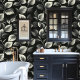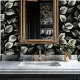This peel-and-stick wallpaper features a sophisticated black background adorned with an intricate, monochromatic leaf pattern. The detailed leaf designs create a timeless, nature-inspired aesthetic, making it perfect for accent walls, furniture upgrades, or home decor projects. Its self-adhesive backing ensures easy application and removal without damaging surfaces, making it an ideal choice for renters or those seeking a stylish, yet temporary decor solution. The bold contrast between the black backdrop and the white leaves adds a modern yet classic charm to any interior space.