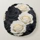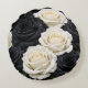 Keywords: black and white rose pillow, floral round pillow, monochrome home décor, elegant throw pillow, realistic rose design, modern decorative cushion, luxury floral accent.