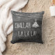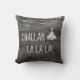 For the family that celebrates both Christmas and Hanukkah, this pillow displays a Christmas tree icon with the Star of David on top! It's perfect for your Chrismukkah celebration! And what better song to sing during your holiday season that "Challah La La La!"? It features white chalk-styled typography set on a monochrome grey rustic wood background with twinkling string lights.