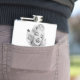 This stylish pocket flask, which has a stunning grayscale pop-art photo of a beautiful Hollywood figure from the 1950s, will boost your look. The woman oozes timeless refinement with her brilliant smile and gorgeous white outfit, which contrast beautifully with the minimalist white background. This flask is not only practical but also a statement piece because to the polished silver elements on the cap and trim, which give it a modern feel. This flask is a chic and useful addition to any collection, making it ideal for fans of vintage fashion and vintage movies. Designed in the USA for people who enjoy retro glam!