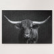 Monochrome Longhorn Steer Cattle Jigsaw Puzzle