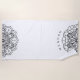 Monochrome beach towel with mandala at the top and bottom with custom monogram in elegant font