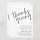 This Minimalistic Monochrome Thanksgiving Invite perfect for a thanksgiving dinner, celebration or party. This invite includes the words "Thanksgiving" in scripted font in black and white.