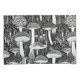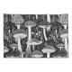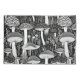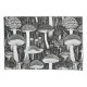 Step into the magical world of fungi with this striking black-and-white mushroom illustration. Inspired by retro block printing techniques, this intricate design showcases a whimsical array of mushrooms amidst delicate forest flora. Perfect for nature lovers and fans of minimalist art, this unique composition adds an enchanting touch to any product.