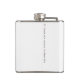 The flask itself is fine. It’s a cheap flask, obviously bought in bulk, however am prepared to overlook that. Given that it is a personalized item, I would have liked to have seen gift boxing instead of the generic packaging. Terrible printing, and/or quality. It’s a cheap, tacky vinyl. It is not cut straight and is also applied in a way that it is overhanging the bottom, causing the glue to catch on items and it will eventually roll and tear, damaging the wrap.