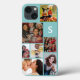 Personalise the phone cover with your favourite photos, easily can fit the photo to the area.8 photo collage iPhone 13 Case in light blue background . you can change the background colour from edit design tool.