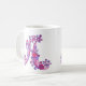 Decorative hand drawn capital Monogram A in pink and purple hues mug. Pretty hand drawn doodled design featuring hearts and flowers. © Unique typography art and design by Sarah Trett. www.sarahtrett.com for www.mylittleeden.com on zazzle