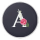 Based on my watercolour illustration of pink rose and leaves underneath a monogram A in white with dark grey background. A beautiful monogram arrangement in front of string of leaves and vibrant pink rose with its delicate petals, buds and detailed dark green leaf. Check out my store for matching items!