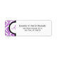 Purple Damask with white background lined with black border. Purple Monogram on white background. Wedded couples name in black on a white background with black return mailing address text. This makes a perfect coordinated label to any damask wedding RSVP or invitation. Place these return address labels on the back of your wedding invitation envelopes or on the front left side of any envelope. Save yourself from hand writing your return address on all out going mail.
