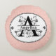 Monogram A, Split for name, with small pink pattern background Round Throw Pillow perfect for the Nursery. Customisable - change to your name and choice of font and chose colour on background pattern.