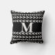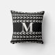 This monogram accent pillow has an abstract pattern geometric original design in bold black and white for home decor. Art copyright Ann Powell al rights reserved.