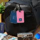 Travel in style with this monogram luggage tag featuring an abstract pink line strokes pattern with a blue centre on the front and a matching blue back side.