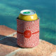 Monogram Abstract Red Roses Can Cooler. A geometric and abstract red roses repeating pattern. You can customise the background colour if you like. I used white to give a nice contrast. The design also features a red and white horizontal band, and a red and white circle containing your own customisable monogram letter in fancy typography. Just hit the Personalise link to make your edits.
