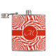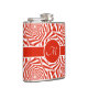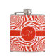 Monogram Abstract Red Roses Flask. A geometric and abstract red roses repeating pattern. You can customise the background colour if you like. I used white to give a nice contrast. The design also features a red and white horizontal band, and a red and white circle containing your own customisable monogram letter in fancy typography. Just hit the Personalise link to make your edits.