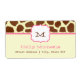 A monogram address label sticker featuring a background of giraffe print. Pink trim. Personalise with your initial inside frame at top centre. Personalise the text at bottom. Look for other giraffe print products at Jill's Paperie.