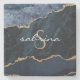 Monogram Agate Geode Navy Blue Gold Stone Coaster