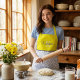 Cook in style with this lovely monogrammed yellow, navy, and white geometric patterned apron! Perfect for bridal shower gifts, birthdays, Mother's Day, or just because!