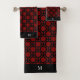 Monogram and Black Abstract Circles on Red Bath Towel Set