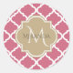 Monogram and Name Big Pink Quartrefoil Pattern Classic Round Sticker