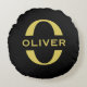Monogram And Name Black And Gold Personalised Round Cushion