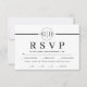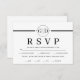 This elegant wedding RSVP card features a sophisticated monogram and stripe design. The upper part of the card displays a stylish stripe, adorned with a circle that showcases your initials. Adding a touch of romance, two delicate hearts are elegantly placed within the design. The lower part of the card is reserved for your personalised text, allowing you to provide all the necessary details for your guests. This elegant and timeless design is perfect for couples seeking a classic and refined aesthetic for their wedding stationery.